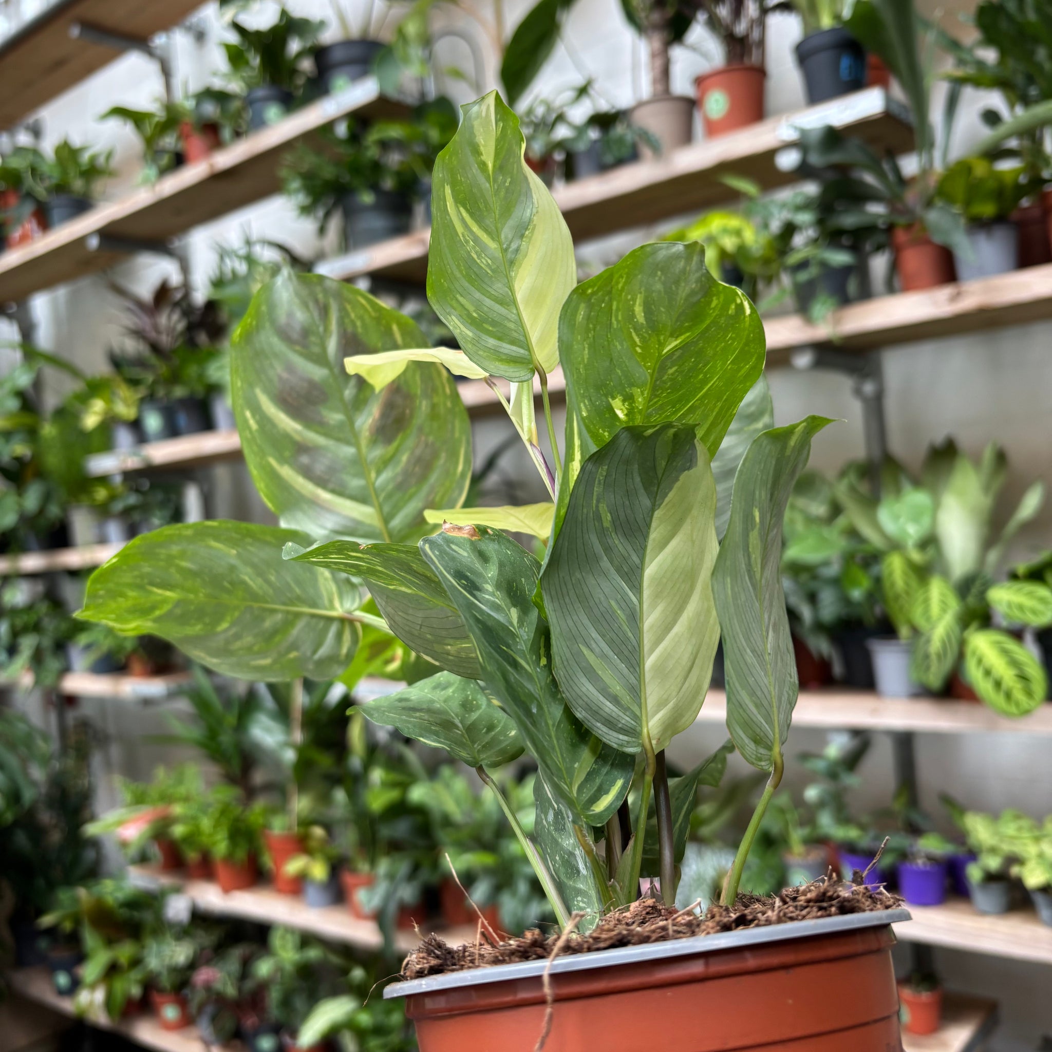 Although the name might be a mouthful, everything else about this Maranta is easy going and a joy to grow. Typically nicknamed 'prayer plant' due to the movement of its leaves in the morning and evening, this is a delicate but dramatic edition to those who have just started with plants, or those with plants in the triple digits.